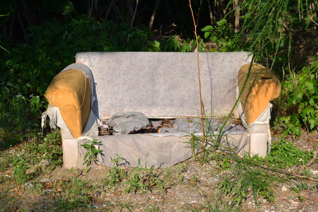 Whereas a single 3.4 mile loop takes an F1 driver about one minute, the analogous pedestrian lap in East Austin took about 120 minutes. A racecar driver constantly accelerates and decelerates as dictated by the course but the speed of walking gave our experience a regular pace, with surroundings shifting at a constant rate of change. Such consistent attention to the urban environment highlighted both its oppressive normality and any deviation from ordinary conditions, however minute. Chance encounters, such as the discovery of a fence bent by the branches of a tree inside of a private yard or an abandoned sofa in the woods, hinted at pathways to continue our walk and to trace the COTA track as closely as possible.