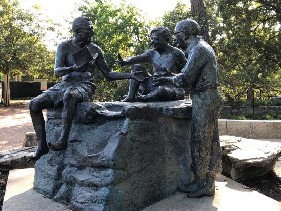 Like Tretter’s student, thousands of Austinites and others enjoy the Springs annually with little to no knowledge of this history. There are no public markers to Zilker’s intentions and none to Barton’s unnamed enslaved. To address this, we propose that a historical marker be placed at or near the Springs. Moreover, we believe an additional effort is required to move beyond recognition towards reconciliation. For that reason, we recommend that Barton Springs, or even just its famed historic “bathhouse,” be renamed to honor J. Mason Brewer. This may seem like an odd request given that Brewer had no recognized connection to the Springs. Nevertheless, it should be recalled that this may be because he was not even able to go the Springs. During his time, he was recognized as the African American literary counterpart to the three philosophers sculpted into the Barton Springs landscape since 1994.