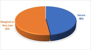 With this research in mind, we recently conducted our own survey of food security, documenting the experiences of UT undergraduate students in accessing food on a daily basis to grasp what that status is and how it intersects with their daily lives and the challenges they face. Our approach involved replicating the research design of previous studies by incorporating the USDA’s household food security questions into our own survey. Based on the responses of 191 students, we found that 52% of undergraduates experience either marginal (24%) or very low food security (28%).