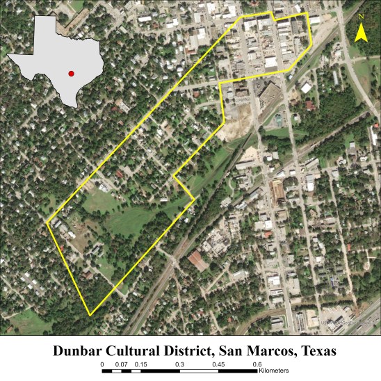 As the gentrification of East Austin and the displacement of its longtime African-American and Latinx communities become increasingly more evident, widely known, and contentious, a similar story is unfolding just down Interstate-35 in the booming college town of San Marcos. Blocks from the city’s downtown square and less than a mile from Texas State University sits the neighborhood once known as “Colored Town.” Now referred to as Dunbar, this area has been home to San Marcos’ African-American community for over a century. While many of Dunbar’s original residents have long since moved out, many black and Latinx households remain and are now facing gentrification pressures as the neighborhood finds itself in the shadow of a wave of development that has transformed the city in recent years. In this short piece, we briefly lay out the history of Dunbar and describe a community-engaged research project currently underway, a collaboration between community members and faculty and students at Texas State University.